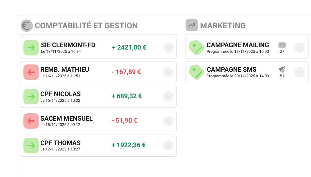 Wayvo centralise toute votre comptabilité et automatise vos tâches clés : facturation, paiements, TVA, rapprochement bancaire, BPF, tableaux de bord… Une gestion fluide, précise et totalement connectée à votre auto-école.